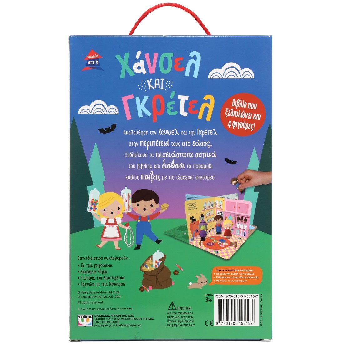 Βιβλίο που ξεδιπλώνει και 4 φιγούρες!Ακολούθησε τον Χάνσελ και την Γκρέτελ στην περιπέτειά στο δάσος. Ξεδίπλωσε τα τρισδιάστατα σκηνικά του βιβλίου και διάβασε το παραμύθι καθώς παίζεις με τις τέσσερις φιγούρες.