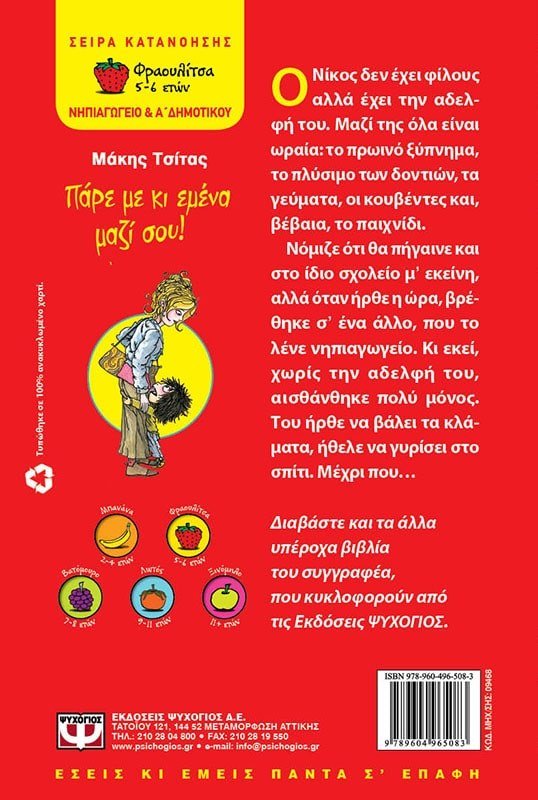 Ο Νίκος δεν έχει φίλους αλλά έχει την αδερφή του. Μαζί της όλα είναι ωραία: το πρωινό ξύπνημα, το πλύσιμο των δοντιών, τα γεύματα, οι κουβέντες και, βέβαια, το παιχνίδι. Νόμιζε ότι θα πήγαινε και στο ίδιο σχολείο μ’ εκείνη, αλλά όταν ήρθε η ώρα, βρέθηκε σ’ ένα άλλο, που το λένε νηπιαγωγείο. Κι εκεί, χωρίς την αδερφή του, αισθάνθηκε πολύ μόνος. Του ήρθε να βάλει τα κλάματα, ήθελε να γυρίσει στο σπίτι. Μέχρι που…Διαβάστε και τα άλλα υπέροχα βιβλία του συγγραφέα, που κυκλοφορούν από τις Εκδόσεις ΨΥΧΟΓΙΟΣ.