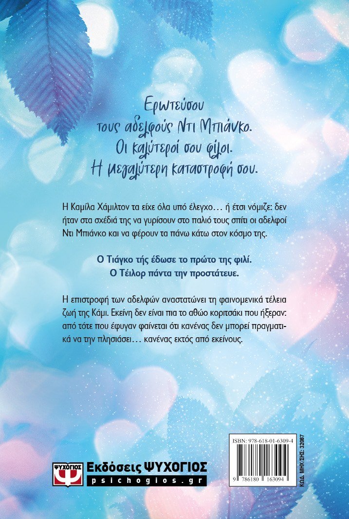 Ερωτεύσου τους αδελφούς Ντι Μπιάνκο.Οι καλύτεροί σου φίλοι.Η μεγαλύτερη καταστροφή σου.Η Καμίλα Χάμιλτον τα είχε όλα υπό έλεγχο… ή έτσι νόμιζε: δεν ήταν στα σχέδιά της να γυρίσουν στο παλιό τους σπίτι οι αδελφοί Ντι Μπιάνκο και να φέρουν τα πάνω κάτω στον κόσμο της.Ο Τιάγκο τής έδωσε το πρώτο της φιλί.Ο Τέιλορ πάντα την προστάτευε.Η επιστροφή των αδελφών αναστατώνει τη φαινομενικά τέλεια ζωή της Κάμι.Εκείνη δεν είναι πια το αθώο κοριτσάκι που ήξεραν: από τότε που έφυγαν φαίνεται ότι κανένας δεν μπορεί πραγματικά να την πλησιάσει… κανένας εκτός από εκείνους.