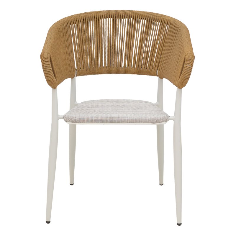 Πολυθρόνα αλουμινίου Raven στοιβαζόμενη λευκός σκελετός-φυσικό textilene-rattan 57x62x78εκ