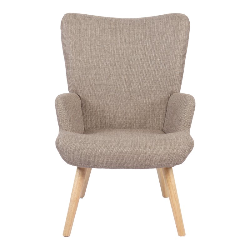 Πολυθρόνα-μπερζέρα Gerlina γκρι-μπεζ ύφασμα με πόδι σε φυσική απόχρωση 71x64x94εκ