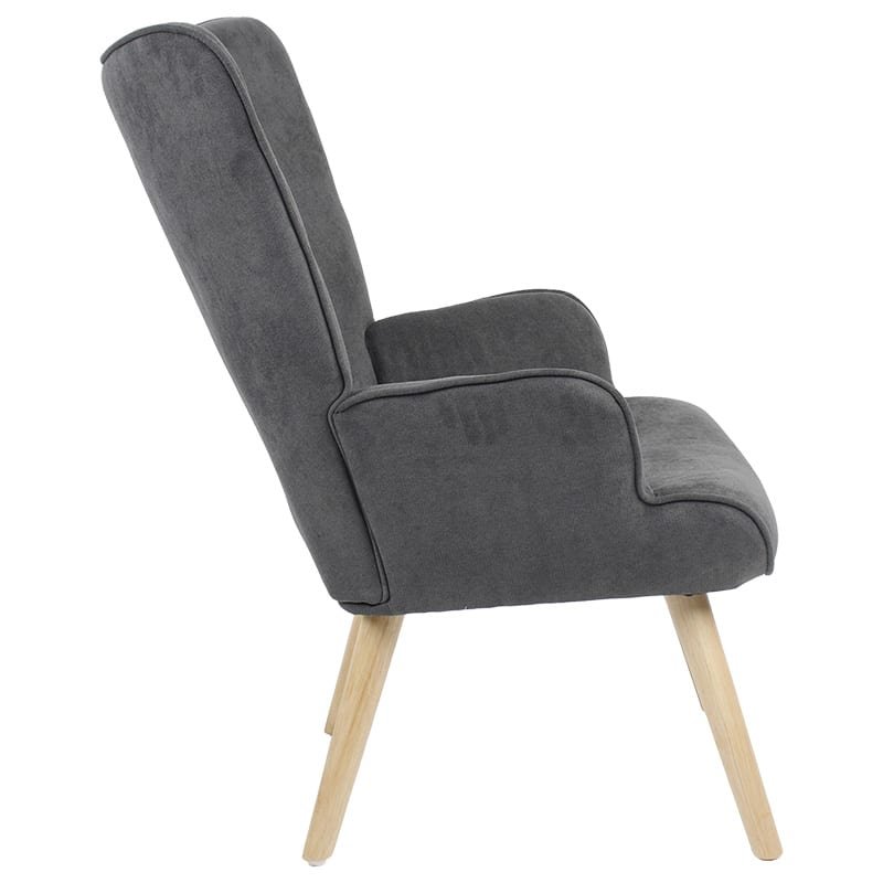 Η πολυθρόνα μπερζέρα Fluffy με διαχρονική πολυτέλεια, είναι φτιαγμένη από μασίφ ξύλο επενδυμένη με ύφασμα υψηλής ποιότητας σε χρώμα ανθρακί. Απολαύστε στιγμές χαλάρωσης σε μια εντυπωσιακή κατασκευή.