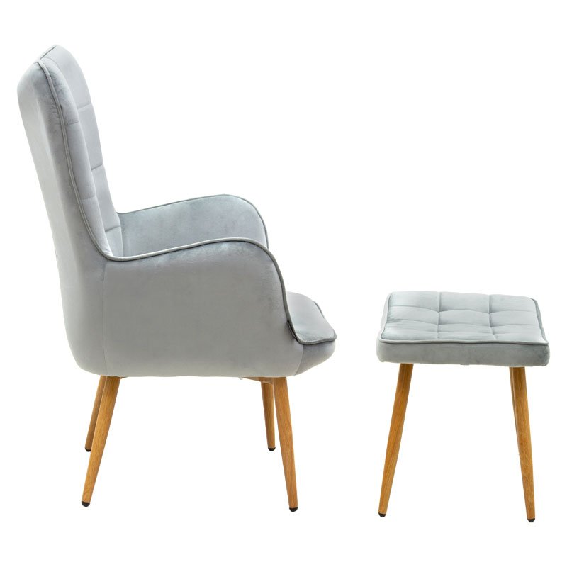 Πολυθρόνα Maddison με υποπόδιο-μαξιλάρι βελούδο γκρι-φυσικό 68x72x98εκ