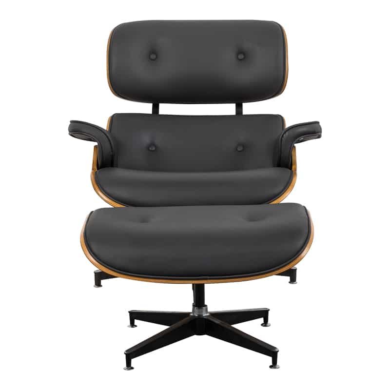 Πολυθρόνα-υποπόδιο relax Jenna μαύρο pu- plywood καρυδί-βάση χρωμίου 82x92x82εκ
