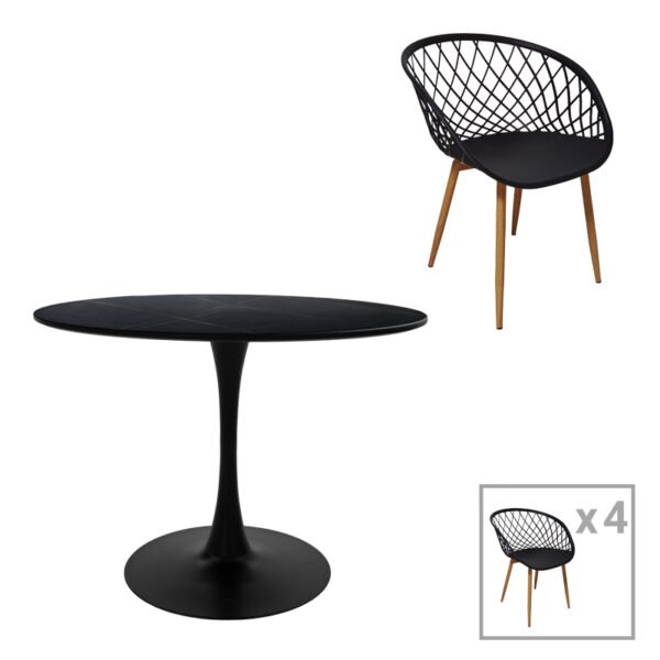Τραπεζαρία Ezra-Balou σετ 5τεμ pp-mdf σε μαύρη-φυσικό απόχρωση Φ120×76εκ