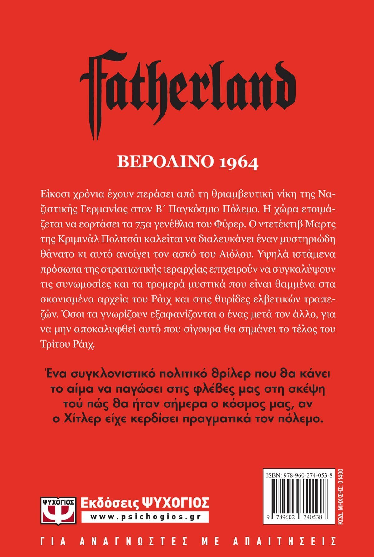 ΒΕΡΟΛΙΝΟ 1964Είκοσι χρόνια έχουν περάσει από τη θριαμβευτική νίκη της Ναζιστικής Γερμανίας στον Β΄ Παγκόσμιο Πόλεμο. Η χώρα ετοιμάζεται να εορτάσει τα 75α γενέθλια του Φύρερ. Ο ντετέκτιβ Μαρτς της Κριμινάλ Πολιτσάι καλείται να διαλευκάνει έναν μυστηριώδη θάνατο κι αυτό ανοίγει τον ασκό του Αιόλου. Υψηλά ιστάμενα πρόσωπα της στρατιωτικής ιεραρχίας επιχειρούν να συγκαλύψουν τις συνωμοσίες και τα τρομερά μυστικά που είναι θαμμένα στα σκονισμένα αρχεία του Ράιχ και στις θυρίδες ελβετικών τραπεζών. Όσοι τα γνωρίζουν εξαφανίζονται ο ένας μετά τον άλλο, για να μην αποκαλυφθεί αυτό που σίγουρα θα σημάνει το τέλος του Τρίτου Ράιχ.Ένα συγκλονιστικό πολιτικό θρίλερ που θα κάνει το αίμα να παγώσει στις φλέβες μας στη σκέψη τού πώς θα ήταν σήμερα ο κόσμος μας, αν ο Χίτλερ είχε κερδίσει πραγματικά τον πόλεμο.