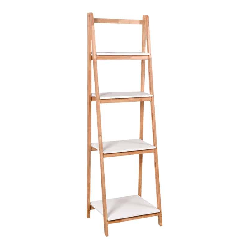 Ραφιέρα δαπέδου Benwen pakoworld πτυσσόμενη rubberwood-mdf σε λευκή-φυσική απόχρωση 42×34.5×140εκ