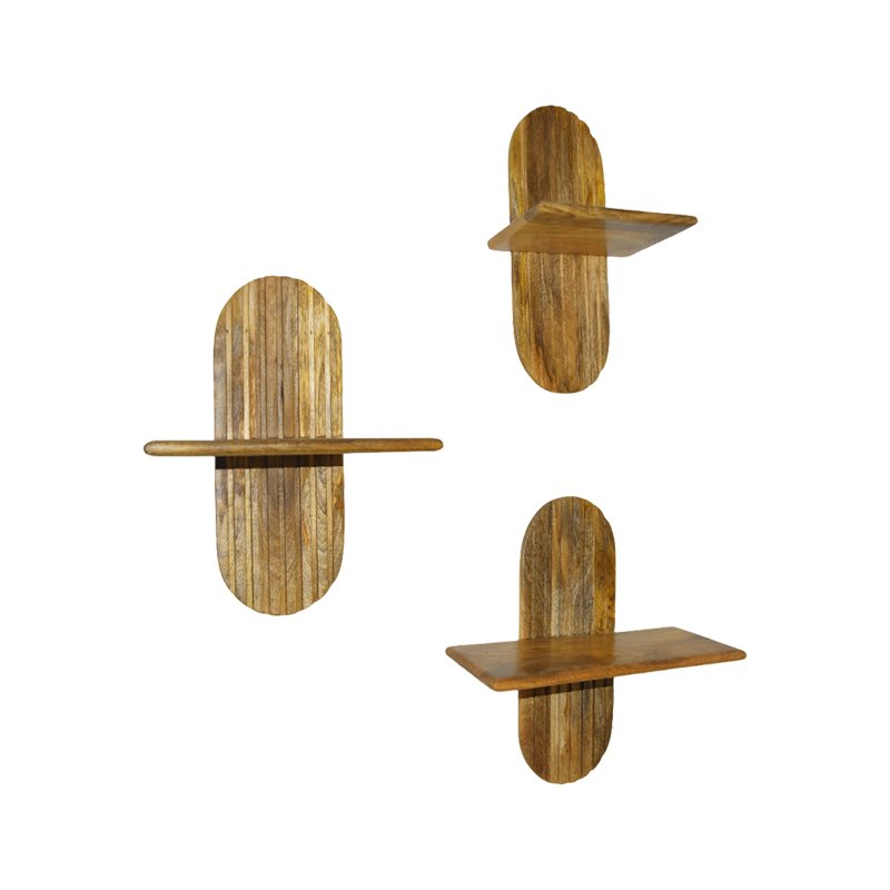Ραφιέρα τοίχου Arcadia 3 τεμ pakoworld μασίφ ξύλο μάνγκο σε φυσική απόχρωση 30x20x40εκ