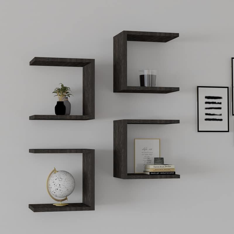 Ραφιέρα τοίχου Perari 4τεμ.σε σκούρο καρυδί απόχρωση 30×19.6×30εκ