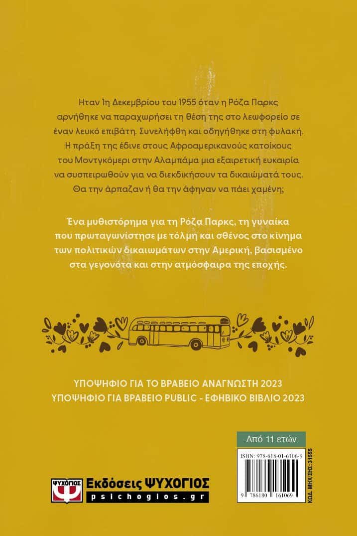 Ήταν 1η Δεκεμβρίου του 1955 όταν η Ρόζα Παρκς αρνήθηκε να παραχωρήσει τη θέση της στο λεωφορείο σε έναν λευκό επιβάτη. Συνελήφθη και οδηγήθηκε στη φυλακή. Η πράξη της έδινε στους Αφροαμερικανούς κατοίκους του Μοντγκόμερι στην Αλαμπάμα μια εξαιρετική ευκαιρία να συσπειρωθούν για να διεκδικήσουν τα δικαιώματά τους. Θα την άρπαζαν ή θα την άφηναν να πάει χαμένη;Ένα μυθιστόρημα για τη Ρόζα Παρκς, τη γυναίκα που πρωταγωνίστησε με τόλμη και σθένος στο κίνημα των πολιτικών δικαιωμάτων στην Αμερική, βασισμένο στα γεγονότα και στην ατμόσφαιρα της εποχής.