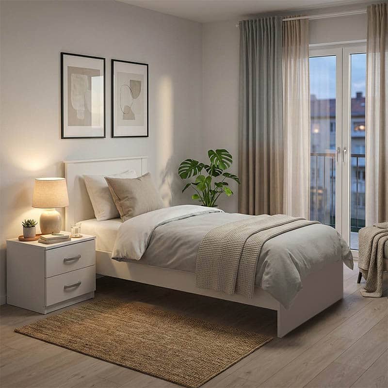 Σετ Κρεβατοκάμαρας Athos Λευκό με Κρεβάτι 90×190εκ Σετ 2τεμ