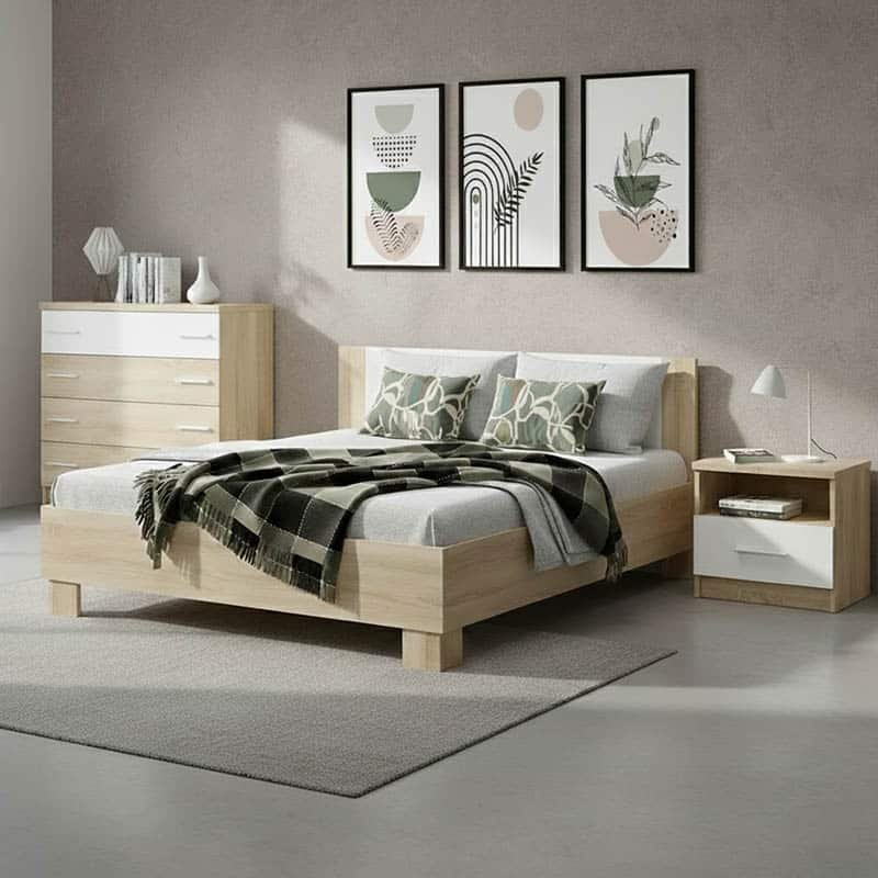 - Περιλαμβάνει 2 κομοδίνα τα οποία διαθέτουν ένα συρτάρι για κλειστή αποθήκευση των αντικειμένων σας καθώς και ένα ράφια για ανοιχτή οργάνωση των αξεσουάρ σας ή για δημιουργία διακοσμητικών συνθέσεων.