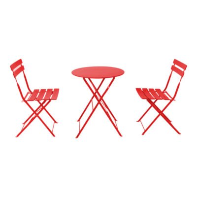 Τραπεζαρία Bistro 3τεμ μεταλλική αναδιπλούμενη σε κόκκινη απόχρωση Φ60×71εκ