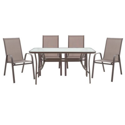 Τραπεζαρία Ensure-Calan σετ 5τεμ μέταλλο-γυαλί καφέ 140x80x70εκ