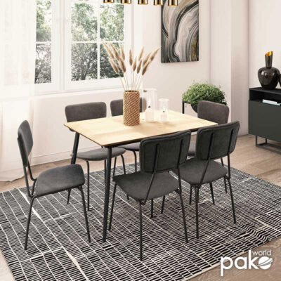 Τραπεζαρία Shazam-Τania σετ 7τμχ MDF επεκτεινόμενη sonoma-ανθρακί 120-160x80x76εκ