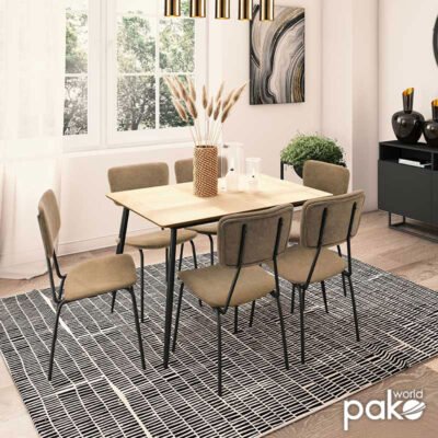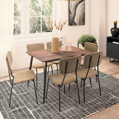 Τραπεζαρία Shazam-Τania σετ 7τμχ MDF επεκτεινόμενη καρυδί-μπεζ 120-160x80x76εκ