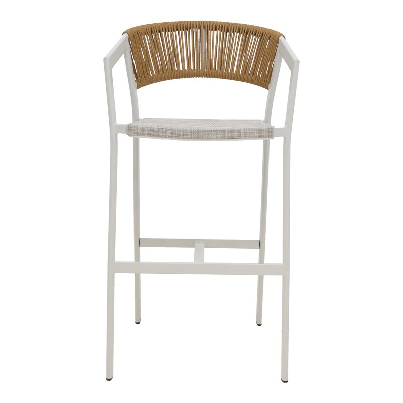 Σκαμπό μπαρ αλουμινίου Phoenix στοιβαζόμενo λευκός σκελετός-textilene φυσικό rattan 53x58x103εκ