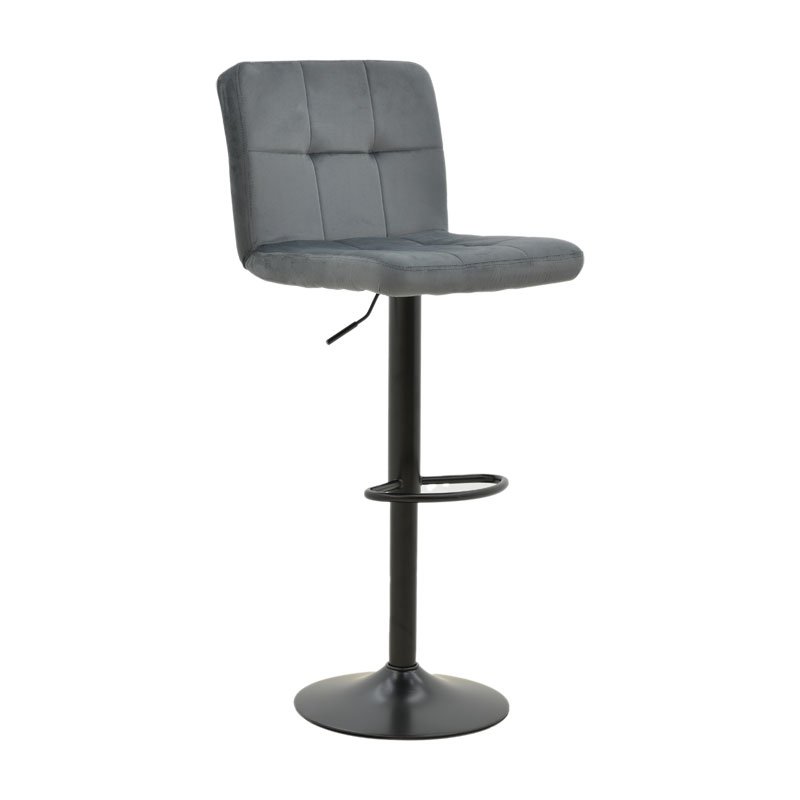 - Έδρα επενδυμένη με γκρι βελούδο αρίστης ποιότητας.Το βελούδο είναι ένα πολυτελές ύφασμα με απαλή υφή και ιδιαίτερη λάμψη, που συνήθως χρησιμοποιείται για επιπλαρισμό και διακόσμηση. Σε σκαμπό μπαρ, το βελούδο προσδίδει μια αίσθηση πολυτέλειας και εκλεπτυσμένου στιλ.Η μαλακή του υφή προσφέρει άνεση και είναι ευχάριστη στην αφή, καθιστώντας το σκαμπό μπαρ ιδανικό για χαλάρωση και άνετη χρήση.