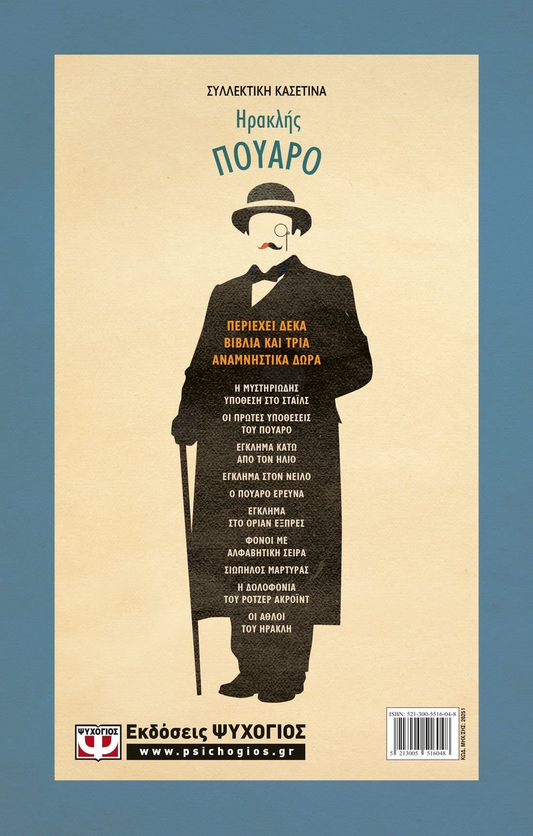 Μια νέα συλλεκτική κασετίνα αφιερωμένη στον πιο διάση μο ντετέκτιβ όλων των εποχών τον Ηρακλή Πουαρό. Ο Πουαρό ήταν ένας συνταξιούχος Βέλγος αστυνομικός που πρωτοεμφανίστηκε στο πρώτο μυθιστόρημα που εξέδωσε η Agatha Christie. Πρόκειται για τη Μυστηριώδη υπόθεση στο Στάιλς, που έκλεισε πέρσι τα εκατό της χρόνια. ΠΕΡΙΕΧΕΙ 10 ΒΙΒΛΙΑ ΚΑΙ ΤΡΙΑ ΑΝΑΜΝΗΣΤΙΚΑ ΔΩΡΑ*Η ΜΥΣΤΗΡΙΩΔΗΣ ΥΠΟΘΕΣΗ ΣΤΟ ΣΤΑΪΛΣΟΙ ΠΡΩΤΕΣ ΥΠΟΘΕΣΕΙΣ ΤΟΥ ΠΟΥΑΡΟΕΓΚΛΗΜΑ ΚΑΤΩ ΑΠΟ ΤΟΝ ΗΛΙΟΕΓΚΛΗΜΑ ΣΤΟΝ ΝΕΙΛΟΟ ΠΟΥΑΡΟ ΕΡΕΥΝΑΕΓΚΛΗΜΑ ΣΤΟ ΟΡΙΑΝ ΕΞΠΡΕΣΦΟΝΟΙ ΜΕ ΑΛΦΑΒΗΤΙΚΗ ΣΕΙΡΑΣΙΩΠΗΛΟΣ ΜΑΡΤΥΡΑΣΗ ΔΟΛΟΦΟΝΙΑ ΤΟΥ ΡΟΤΖΕΡ ΑΚΡΟΪΝΤΟΙ ΑΘΛΟΙ ΤΟΥ ΗΡΑΚΛΗ*Σουβέρ, σελιδοδείκτη και πάνινη τσάντα Ηρακλή Πουαρό.