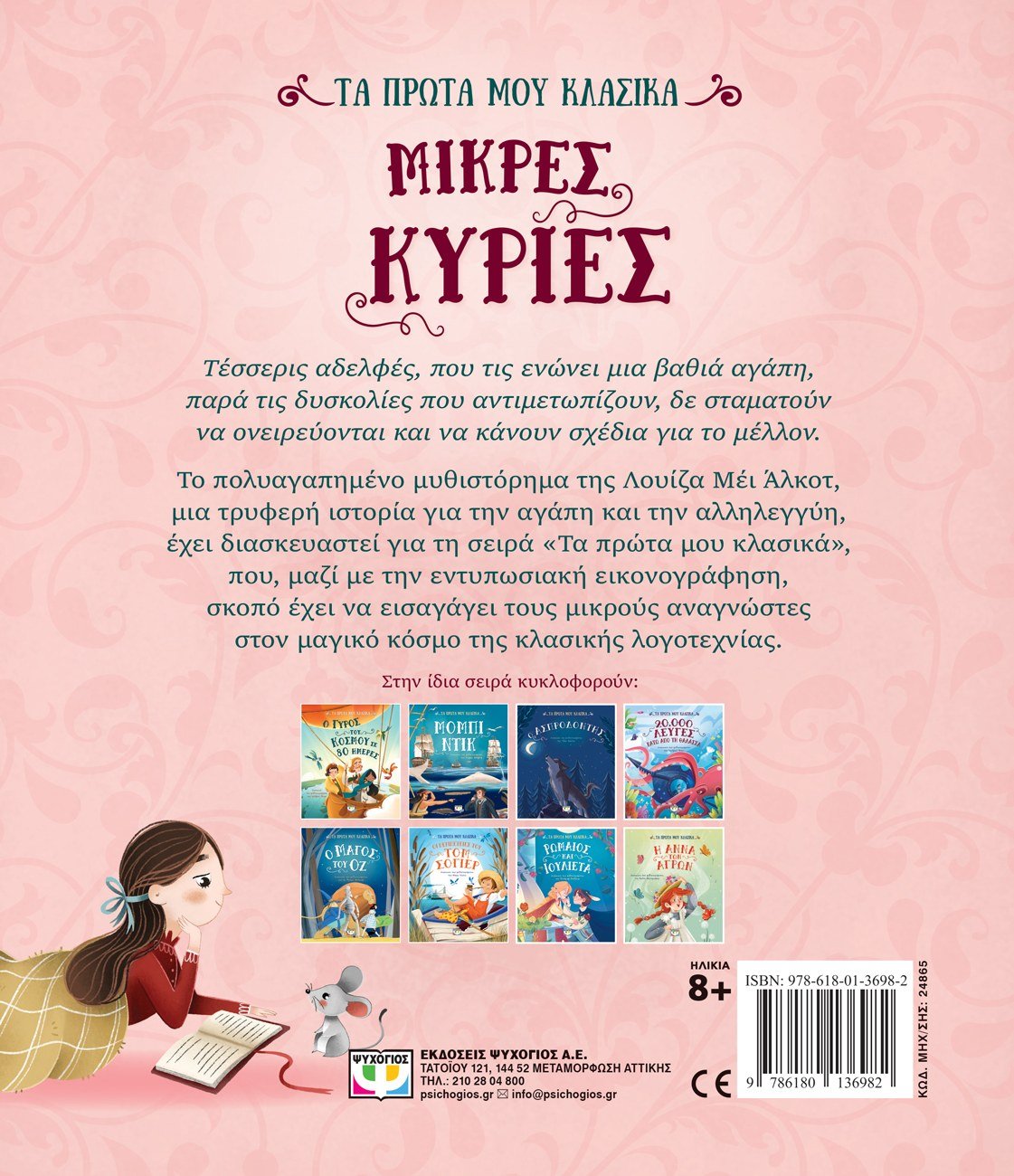 Τέσσερις αδελφές, που τις ενώνει µια βαθιά αγάπη, παρά τις δυσκολίες που αντιµετωπίζουν, δε σταµατούν να ονειρεύονται και να κάνουν σχέδια για το µέλλον. Το πολυαγαπηµένο µυθιστόρηµα της Λουίζα Μέι Άλκοτ, µια τρυφερή ιστορία για την αγάπη και την αλληλεγγύη, έχει διασκευαστεί για τη σειρά «Τα πρώτα µου κλασικά», που, µαζί µε την εντυπωσιακή εικονογράφηση, σκοπό έχει να εισαγάγει τους µικρούς αναγνώστες στον µαγικό κόσµο της κλασικής λογοτεχνίας.