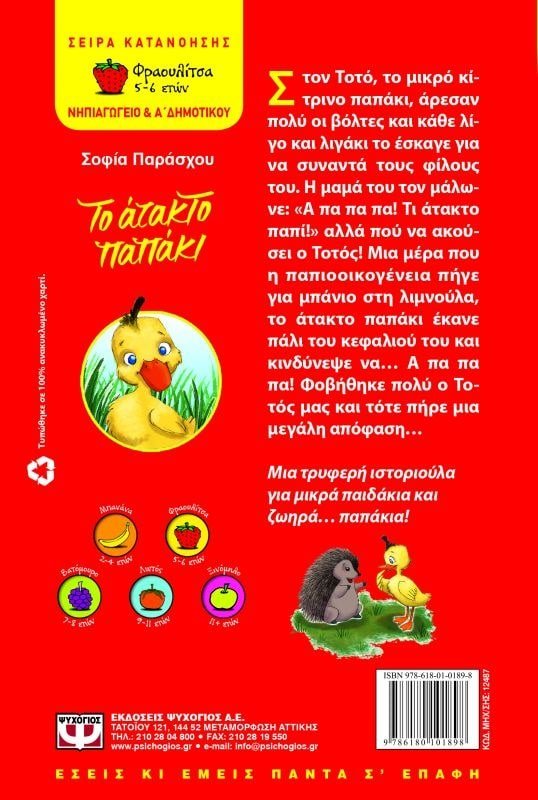 Στον Τοτό, το μικρό κίτρινο παπάκι, άρεσαν πολύ οι βόλτες και κάθε λίγο και λιγάκι το έσκαγε για να συναντά τους φίλους του. Η μαμά του τον μάλωνε: «Α πα πα πα! Τι άτακτο παπί!» αλλά πού να ακούσει ο Τοτός! Μια μέρα που η παπιοοικογένεια πήγε για μπάνιο στη λιμνούλα, το άτακτο παπάκι έκανε πάλι του κεφαλιού του και κινδύνεψε να… Α πα πα πα! Φοβήθηκε πολύ ο Τοτός μας και τότε πήρε μια μεγάλη απόφαση…Μια τρυφερή ιστοριούλα για μικρά παιδάκια και ζωηρά… παπάκια!