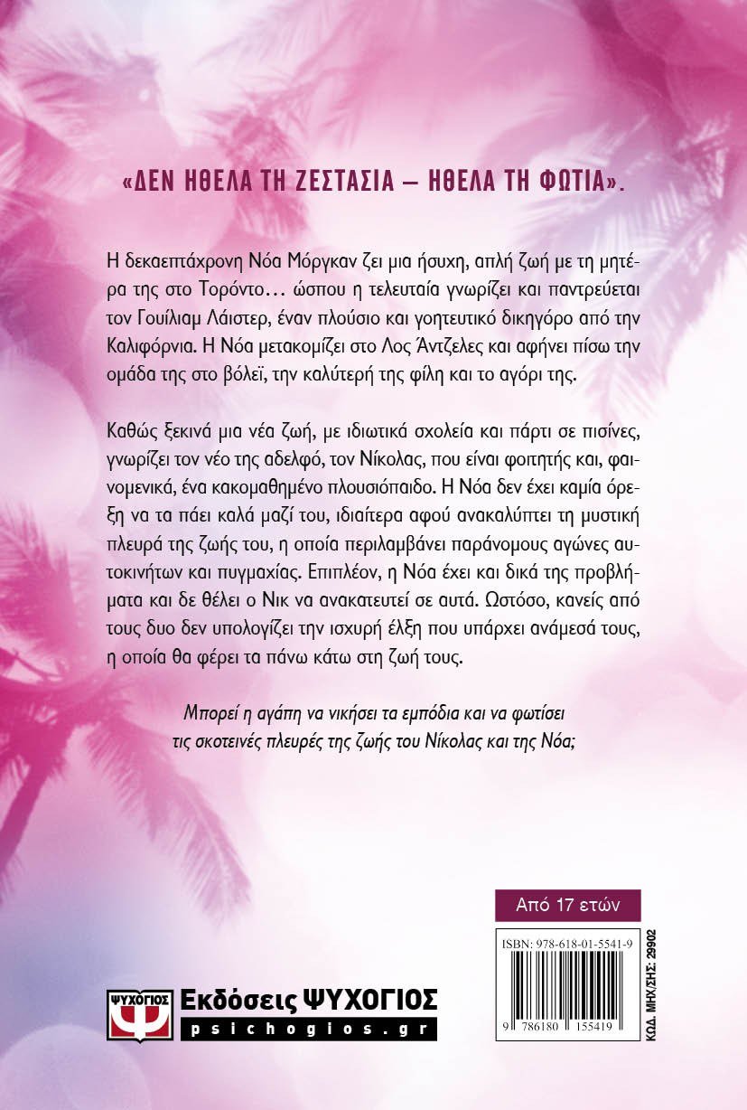 «Δεν ήθελα τη ζεστασιά – ήθελα τη φωτιά.»Η δεκαεπτάχρονη Νόα Μόργκαν ζει μια ήσυχη, απλή ζωή με τη μητέρα της στο Τορόντο… ώσπου η μητέρα της γνωρίζει και παντρεύεται τον Γουίλιαμ Λάιστερ, έναν πλούσιο κι αινιγματικό δικηγόρο από την Καλιφόρνια. Η Νόα μετακομίζει στο Λος Άντζελες κι αφήνει πίσω την ομάδα της στο βόλεϊ, την καλύτερή της φίλη και το αγόρι της.Καθώς ξεκινά μια νέα ζωή με ιδιωτικά σχολεία και πάρτι σε πισίνες, γνωρίζει τον νέο της αδερφό, τον Νίκολας, που είναι φοιτητής και φαινομενικά, ένα κακομαθημένο πλουσιόπαιδο. Η Νόα δεν έχει καμία όρεξη να τα πάει καλά μαζί του, και ιδιαίτερα αφού ανακαλύπτει τη μυστική πλευρά της ζωής του, η οποία περιλαμβάνει παρανόμους αγώνες αυτοκινήτων και πυγμαχίας. Συν το ότι η Νόα έχει και δικά της προβλήματα και δεν θέλει ο Νικ να ανακατευτεί σε αυτά. Ωστόσο, κανείς από τους δυο τους δεν υπολογίζει την ισχυρή έλξη που υπάρχει ανάμεσά τους, πράγμα που αρκεί για να φέρει τα πάνω κάτω στη ζωή τους.Μπορεί η αγάπη να νικήσει τη σκοτεινή πλευρά των δρόμων του Λος Άντζελες ή θα καταφέρει το σκοτάδι ανάμεσά στον Νικ και τη Νόα να τους καταπιεί;