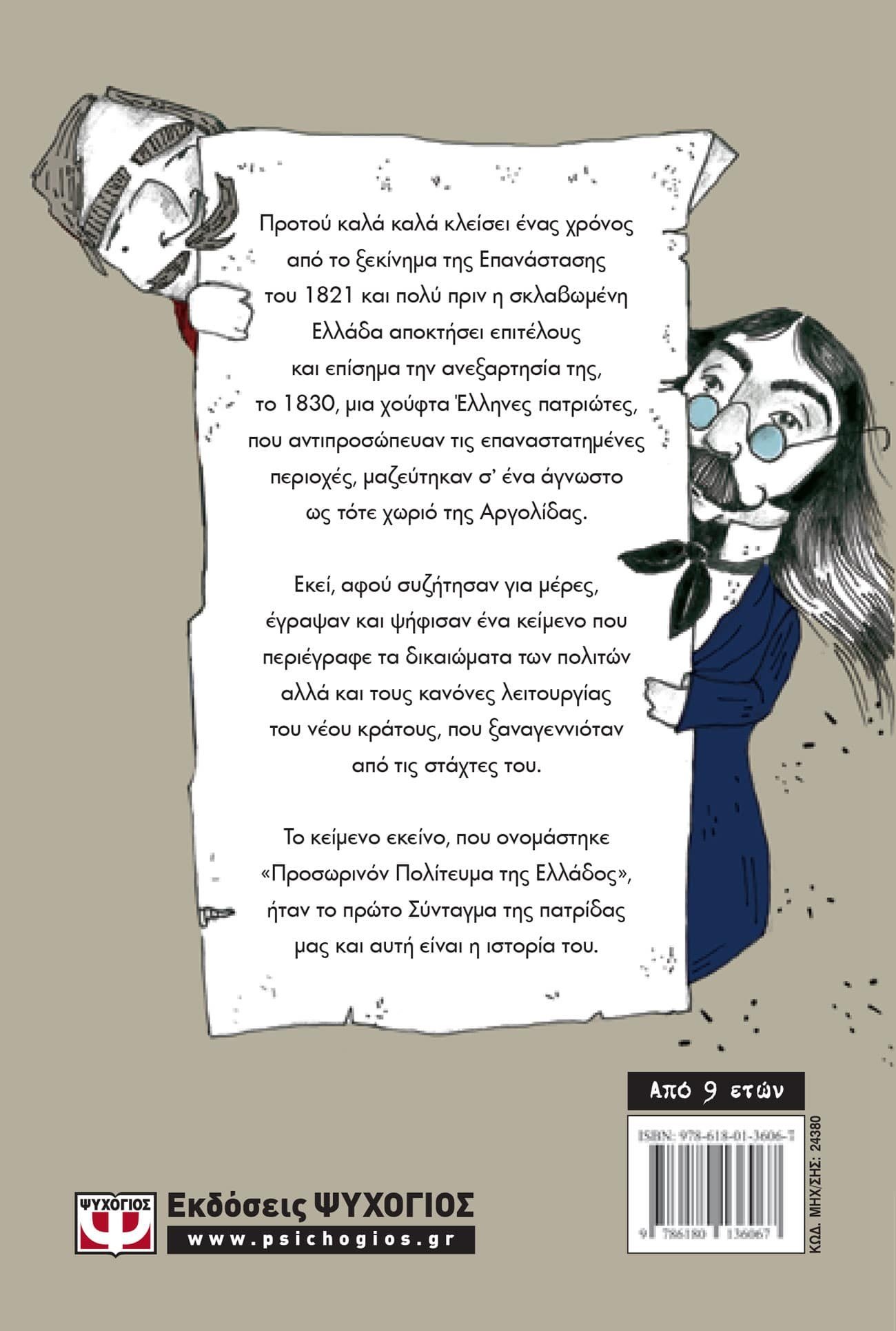 Προτού καλά καλά κλείσει ένας χρόνος από το ξεκίνημα της Επανάστασης του 1821 και πολύ πριν η σκλαβωμένη Ελλάδα αποκτήσει επιτέλους και επίσημα την ανεξαρτησία της, το 1830, μια χούφτα Έλληνες πατριώτες, που αντιπροσώπευαν τις επαναστατημένες περιοχές, μαζεύτηκαν σ’ ένα άγνωστο ως τότε χωριό της Αργολίδας. Εκεί, αφού συζήτησαν για μέρες, έγραψαν και ψήφισαν ένα κείμενο που περιέγραφε τα δικαιώματα των πολιτών αλλά και τους κανόνες λειτουργίας του νέου κράτους, που ξαναγεννιόταν από τις στάχτες του. Το κείμενο εκείνο, που ονομάστηκε «Προσωρινόν Πολίτευμα της Ελλάδος», ήταν το πρώτο Σύνταγμα της πατρίδας μας και αυτή είναι η ιστορία του.