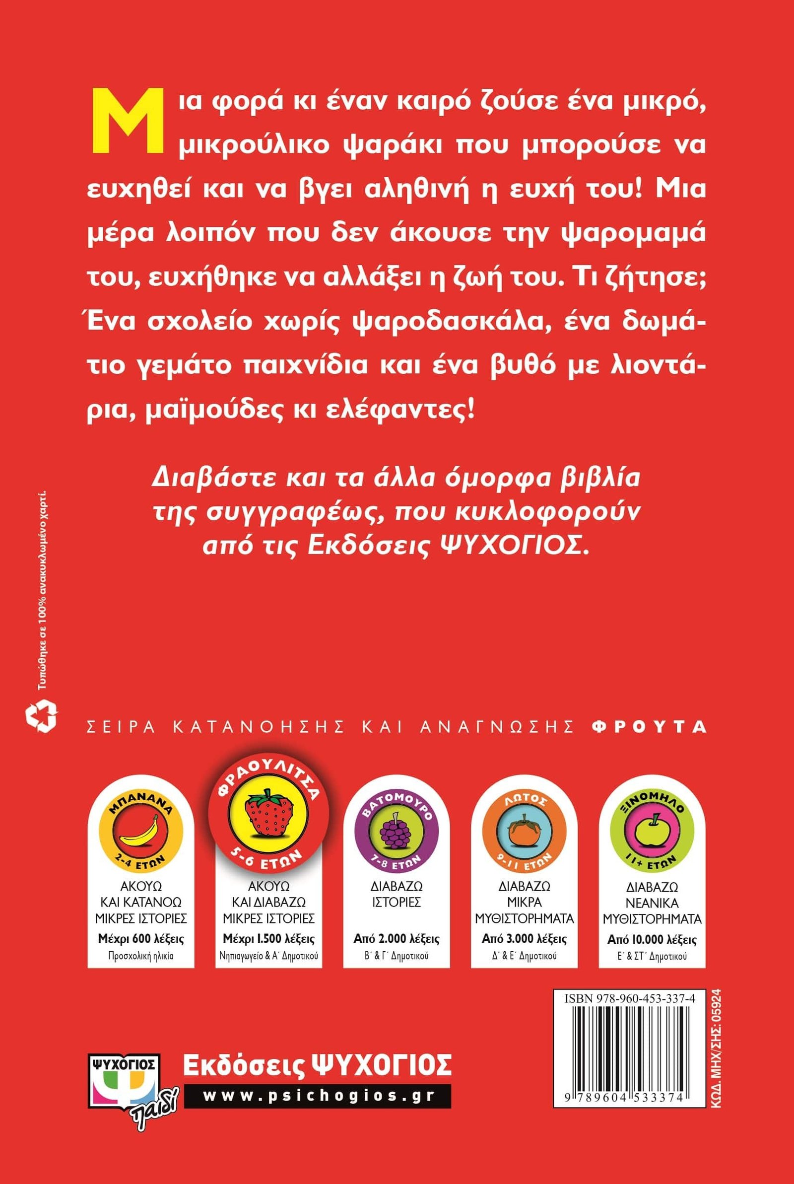Μια φορά κι έναν καιρό ζούσε ένα μικρό, μικρούλικο ψαράκι που μπορούσε να ευχηθεί και να βγει αληθινή η ευχή του! Μια μέρα λοιπόν που δεν άκουσε την ψαρομαμά του, ευχήθηκε να αλλάξει η ζωή του. Τι ζήτησε; Ένα σχολείο χωρίς ψαροδασκάλα, ένα δωμάτιο γεμάτο παιχνίδια και ένα βυθό με λιοντάρια, μαϊμούδες κι ελέφαντες!