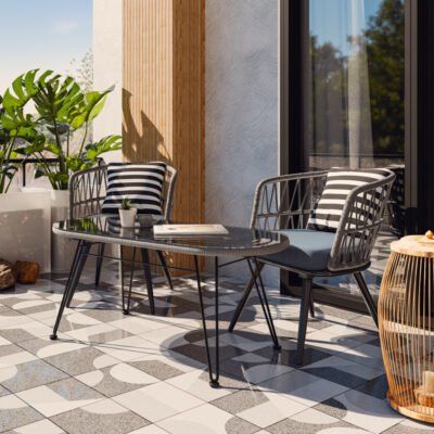Τραπέζι Naoki μέταλλο μαύρο-pe γκρι-γυαλί 100x45x46εκ