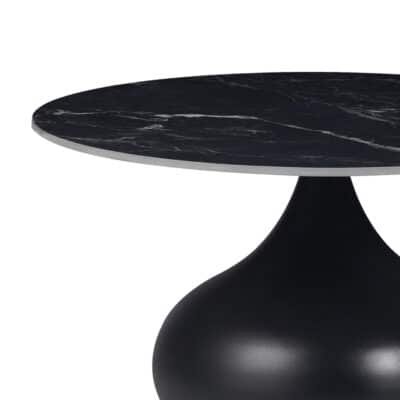 Τραπέζι σαλονιού Kirkene Inart sintered stone σε απόχρωση μαύρο μαρμάρου με μαύρο μέταλλο Φ70×40εκ