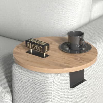 Βοηθητικό τραπεζάκι Linea σε sonoma απόχρωση με μαύρα μεταλλικά πόδια Φ34×10εκ