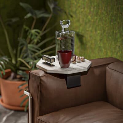 Βοηθητικό τραπεζάκι Linea σε μαύρη όψη μαρμάρου με μαύρα μεταλλικά πόδια 20x35x10εκ