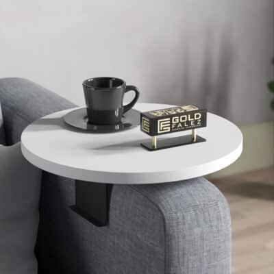 Βοηθητικό τραπεζάκι Linea σε λευκή απόχρωση με μαύρα μεταλλικά πόδια Φ35,5×5εκ