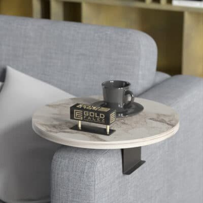 Βοηθητικό τραπεζάκι Linea σε γκρι όψη μαρμάρου με μαύρα μεταλλικά πόδια Φ34×10εκ