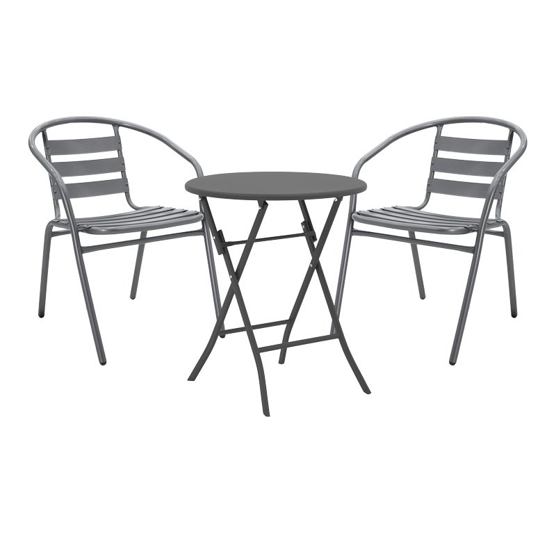 Τραπεζαρία Albero-Tade 3τεμ πτυσσόμενο μέταλλο σε ανθρακί απόχρωση Φ60×70εκ