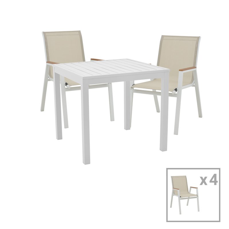Τραπεζαρία Azelie-Kliton Ι pakoworld σετ 5τεμ γκρι ύφασμα-λευκό αλουμίνιο 77x55x94εκ