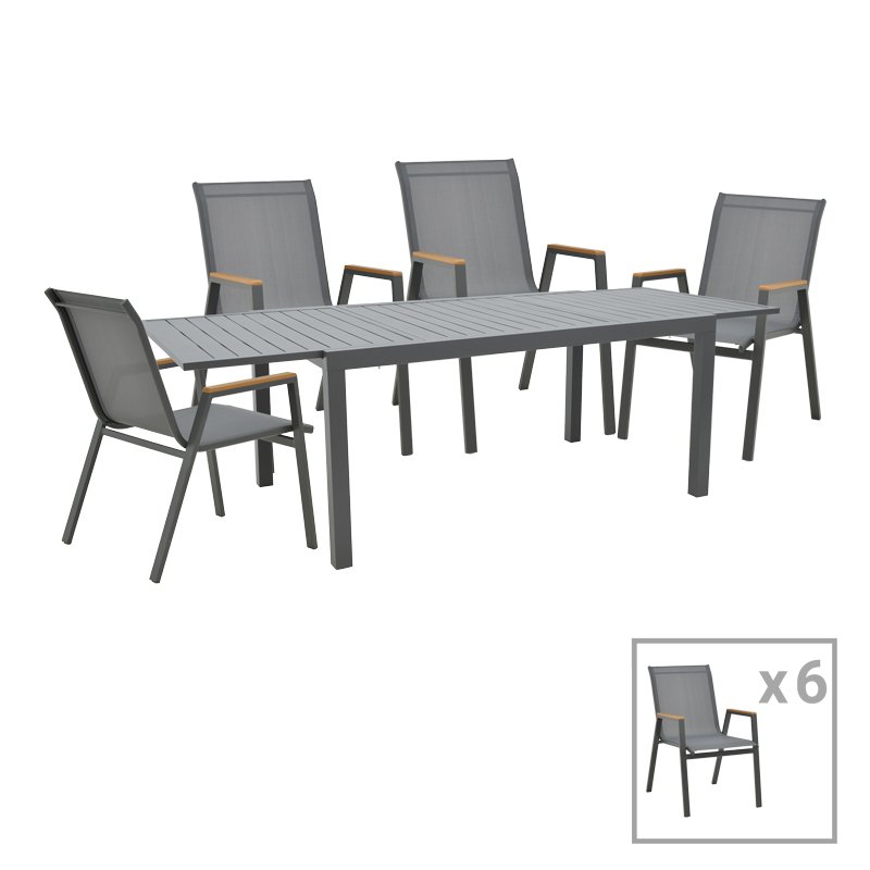 Τραπεζαρία Azelie-Lafla σετ 7τεμ ανθρακί ύφασμα-ανθρακί αλουμίνιο 77x55x94εκ