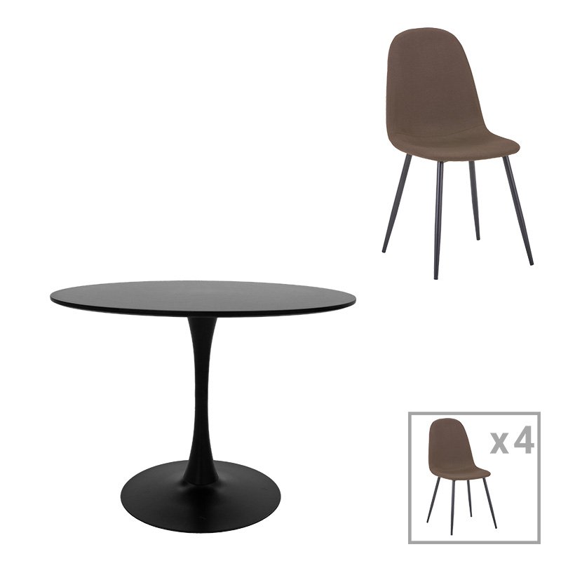 Τραπεζαρία Bella-Balou σετ 5τεμ MDF μαύρο-ύφασμα καφέ Φ120×73εκ