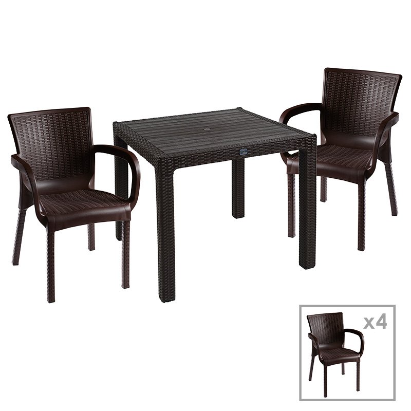 Τραπεζαρία Explore-Festive σετ 5τεμ PP καφέ 90x90x73,5εκ