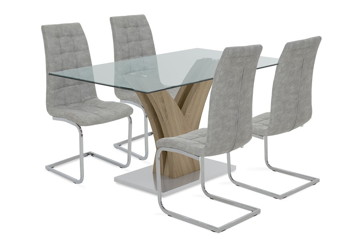 Τραπεζαρία Gull-Darrell σετ 5τμχ διάφανο γυαλί sonoma-κάθισμα antique γκρι pu 150x90x76εκ