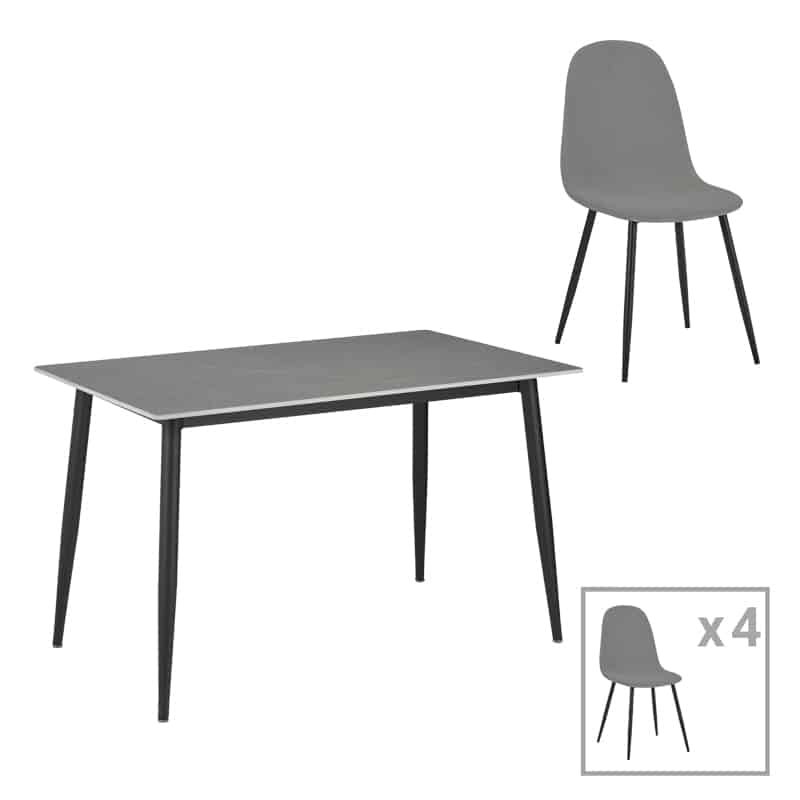 Τραπεζαρία Gustas-Bella D σετ 5τμχ γκρι μαρμάρου sintered stone-μαύρο μέταλλο 140x80x75εκ