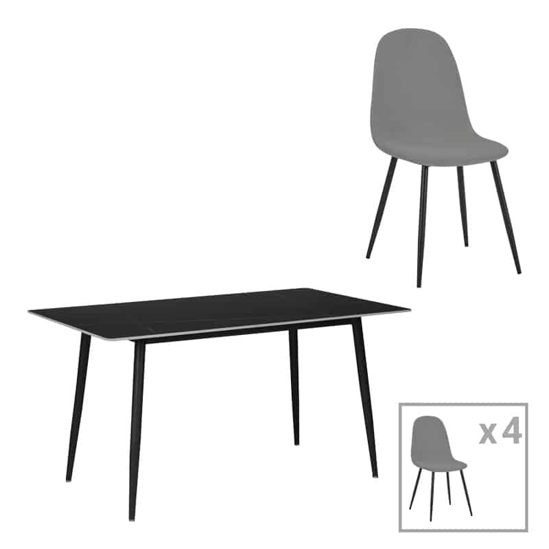 Τραπεζαρία Gustas-Bella σετ 5τμχ γκρι βελούδο με μαύρο μαρμάρου 140x80x75εκ