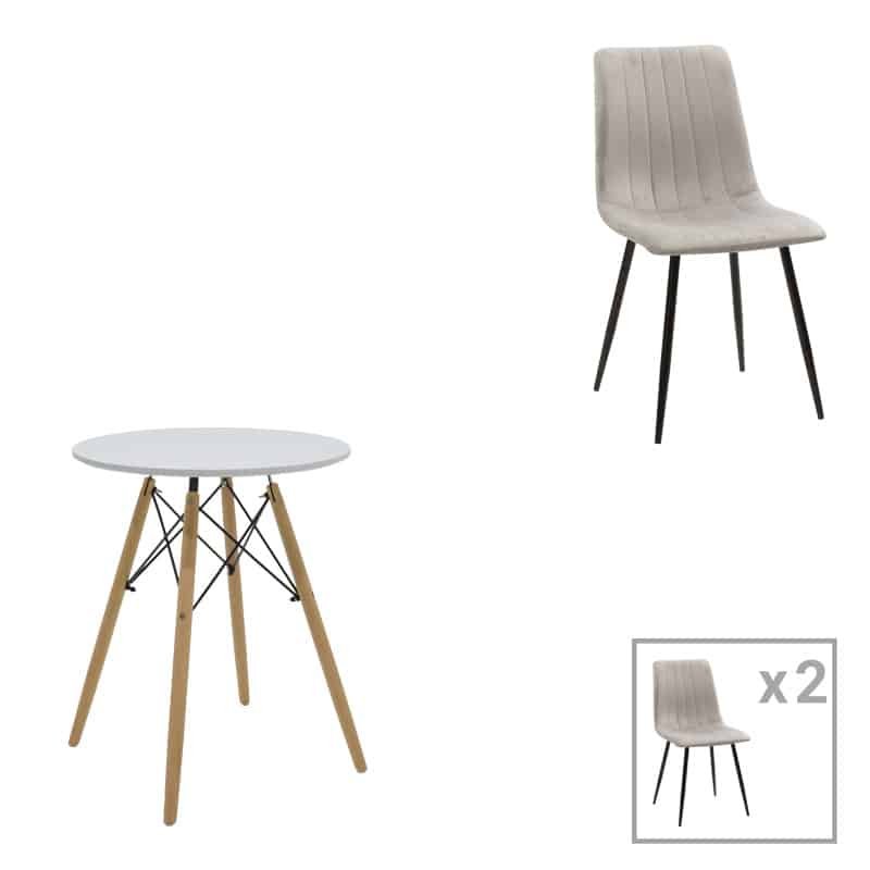 Τραπεζαρία Julita-Noor σετ 3τεμ MDF λευκό-γκρι-πόδια φυσικό Φ60×73εκ