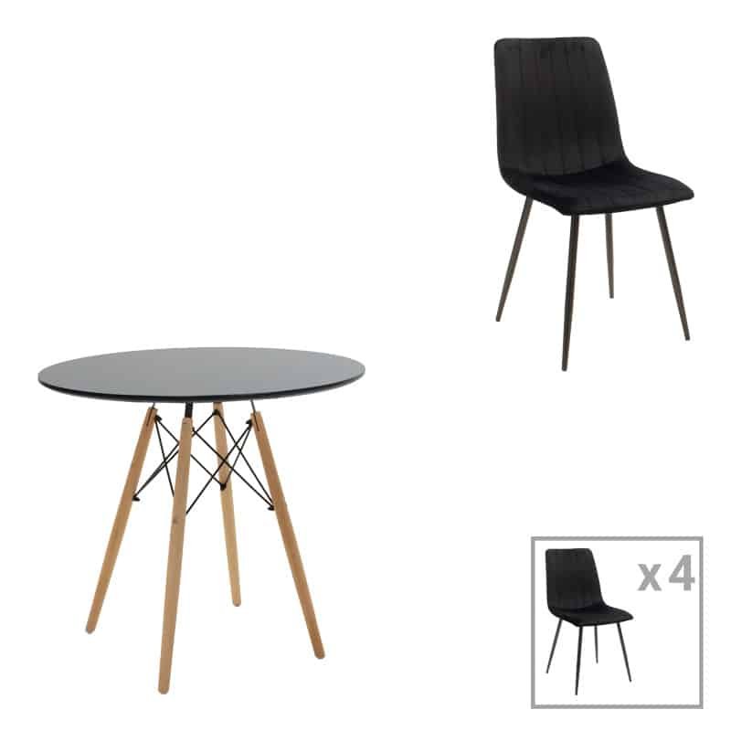 Τραπεζαρία Julita-Noor σετ 5τεμ MDF μαύρο-πόδια φυσικό Φ80×73εκ