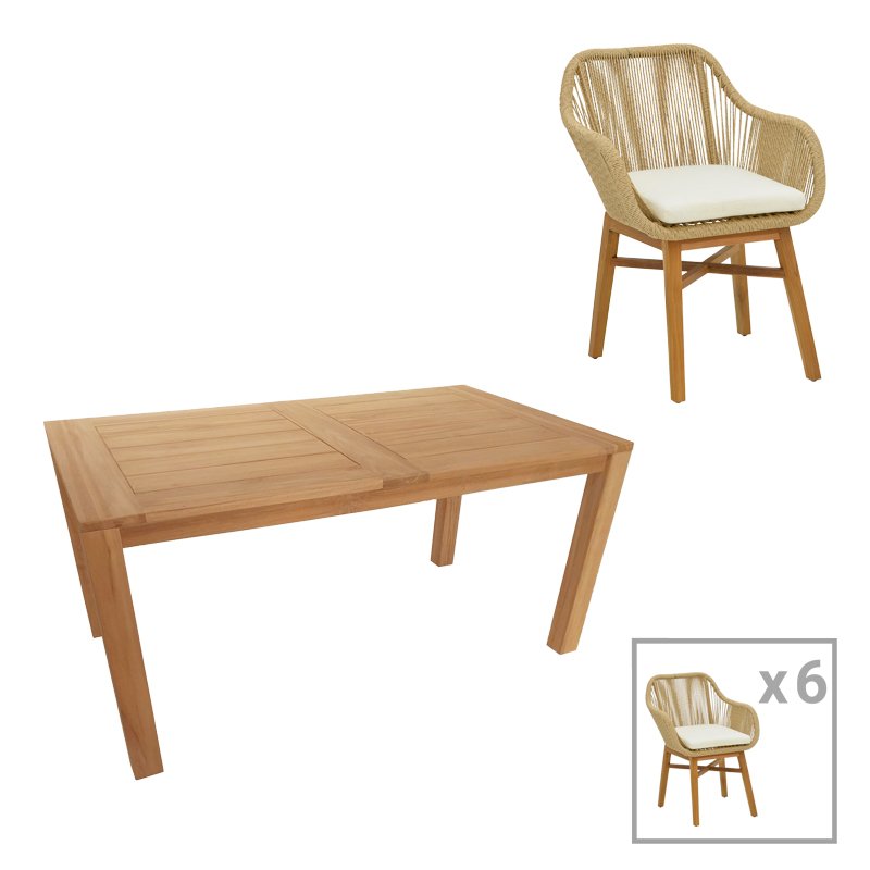 Τραπεζαρία Kalie-Pablo σετ 7τεμ σε φυσική-μπεζ απόχρωση 160x90x76εκ