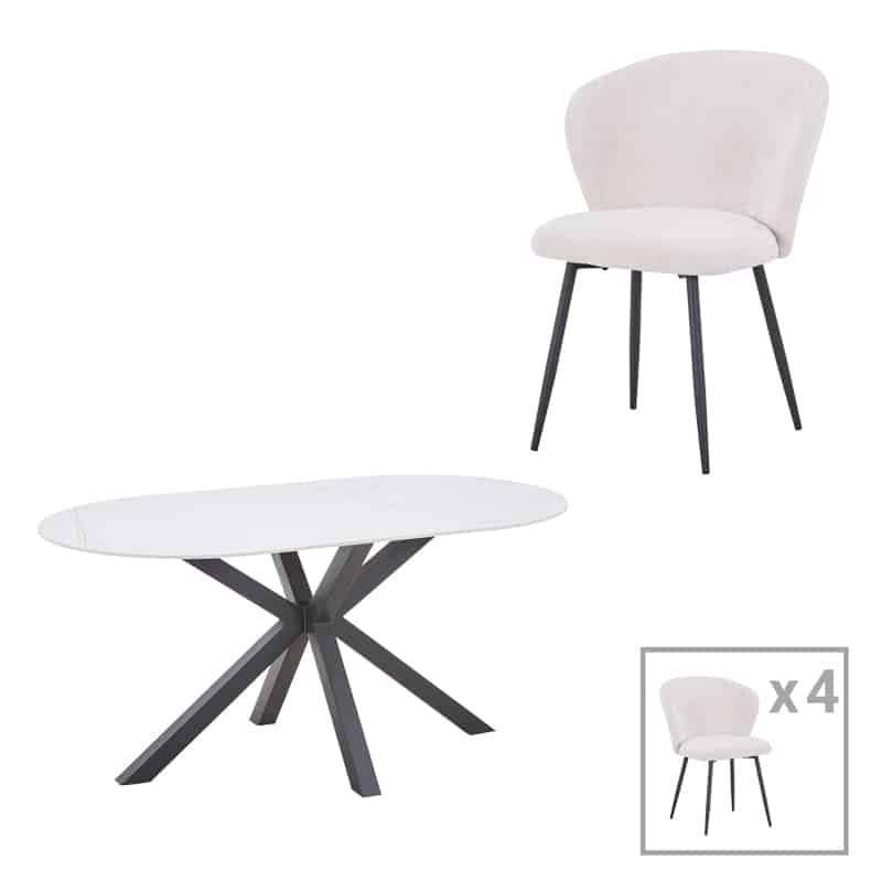Τραπεζαρία Karg-Makrey 5τεμ λευκό ύφασμα – λευκό μαρμάρου 160x90x75εκ