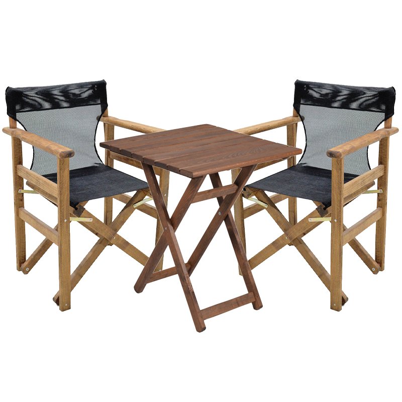 Tραπεζαρία κήπου Retto σετ 3τμχ μασίφ ξύλο οξιάς καρυδί-πανί μαύρο-γκρι 60x60x71εκ