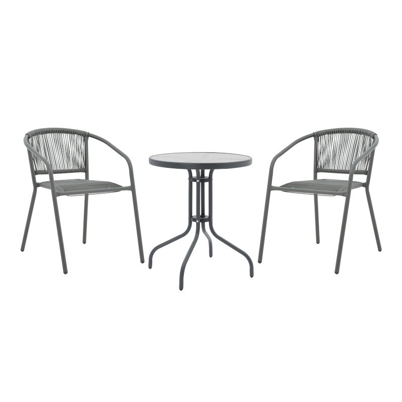 Tραπεζαρία Watson-Lindaria σετ 3τεμ μέταλλο ανθρακί-γυαλί Φ60×70εκ