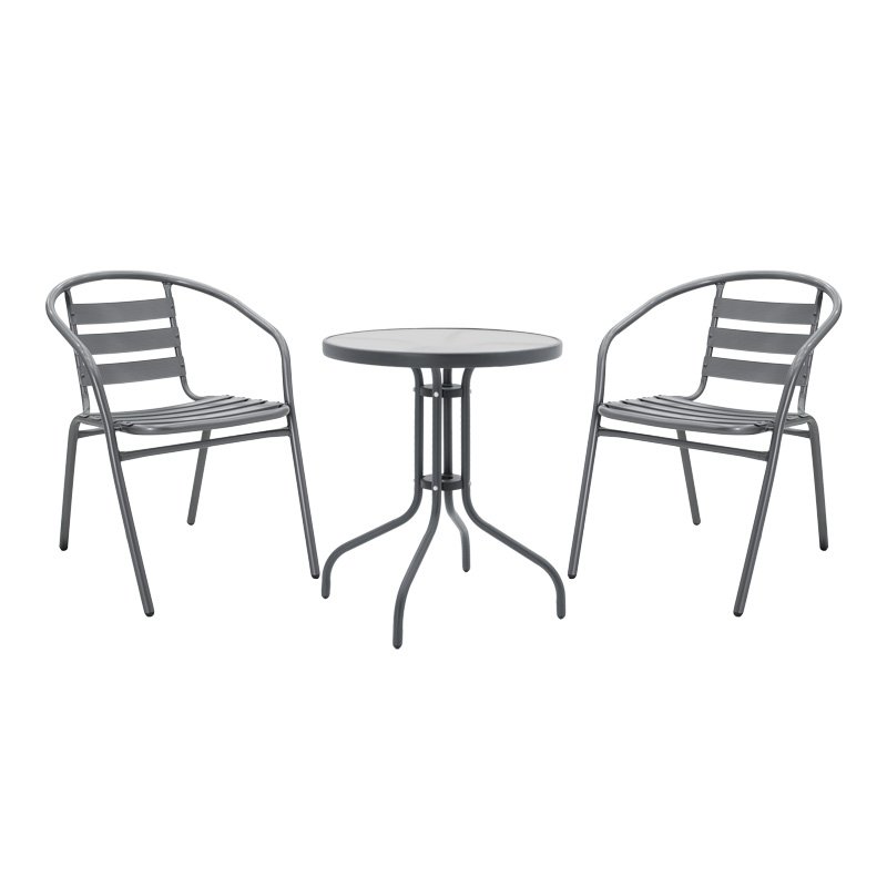 Tραπεζαρία Watson-Tade σετ 3τεμ μέταλλο ανθρακί-γυαλί Φ60×70εκ
