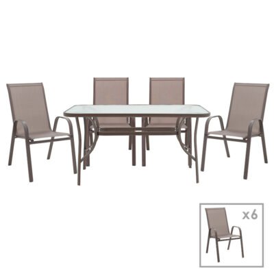 Τραπεζαρία Ensure-Calan σετ 7τεμ μέταλλο-γυαλί καφέ 140x80x70εκ
